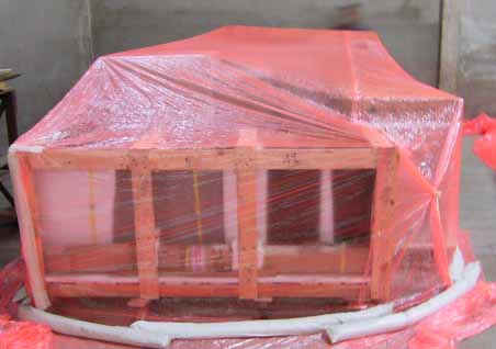 FOR SEA FREIGHT WE DO NOT RUN METAL BANDS:We use cardboard cartons and then hessian wrap sew the boxes.